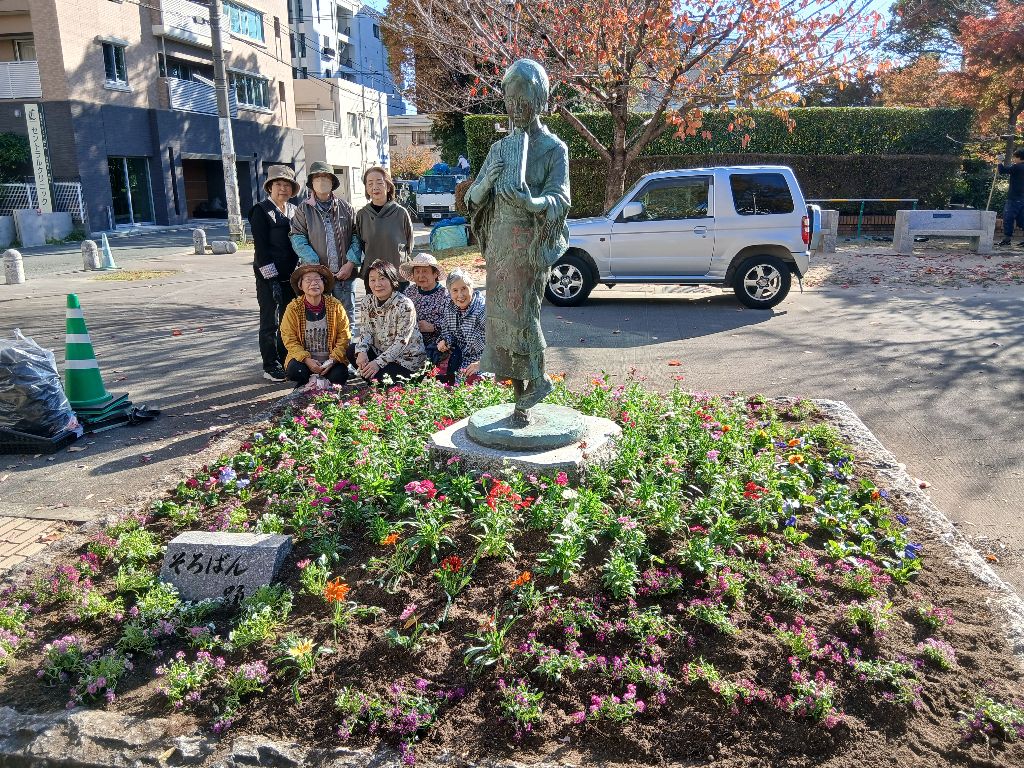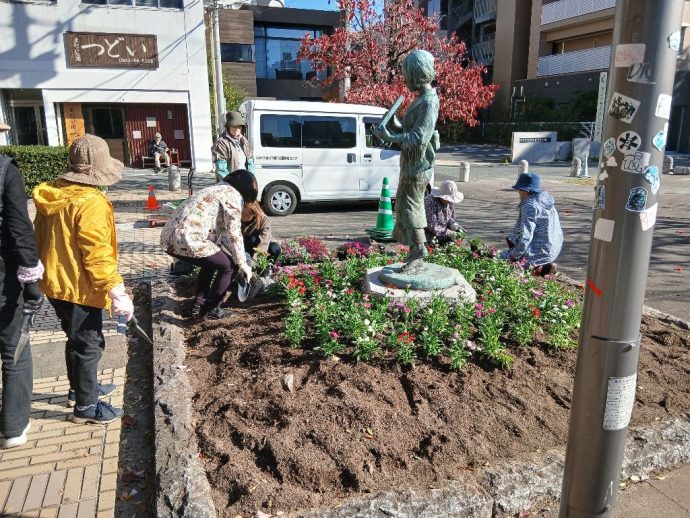 11/21(金)に久留米市の中心街にある東町公園花壇の植替えを行いました。