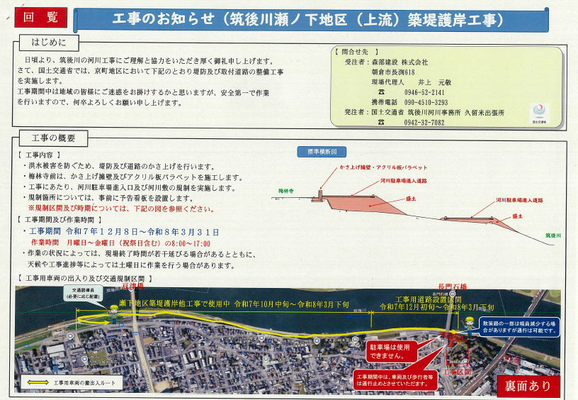 工事概要:筑後川瀬ノ下地区(上流)築堤護岸工事