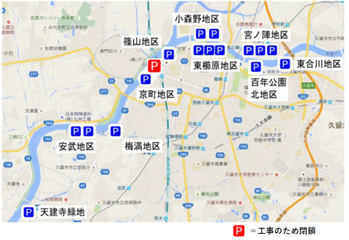 リバーサイドパーク京町地区の駐車場(長門石橋下)がご利用できなくなります。