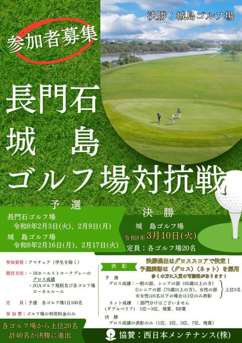長門石ゴルフ場:令和8年2月3日(火)、2月9日(月)